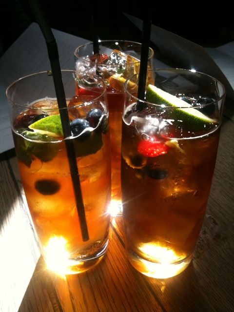 Before we knew it, it was time for lunch, so into a couple of black cabs and across to Belgravia, piling out amongst the roadworks which are part of the revamp of various pipeworks etc for the Olympics in 2012 and which seem to feature in every second street around London at present. Into the white-washed, bright and breezy interior of the Thomas Cubitt, named for one of London’s greatest master builders, and down we sat at a huge sunny table and quickly ordered some Pimms cocktails to start the ball rolling.