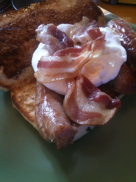 Amongst us we sampled the baked mushrooms with goat’s cheese, streaky bacon, poached eggs, smoked bacon and sage sausage, and pancakes with caramelised apple. And the verdict: ALL GOOD! The coffee was great, the service was lovely and friendly, and the location was pretty as a picture.