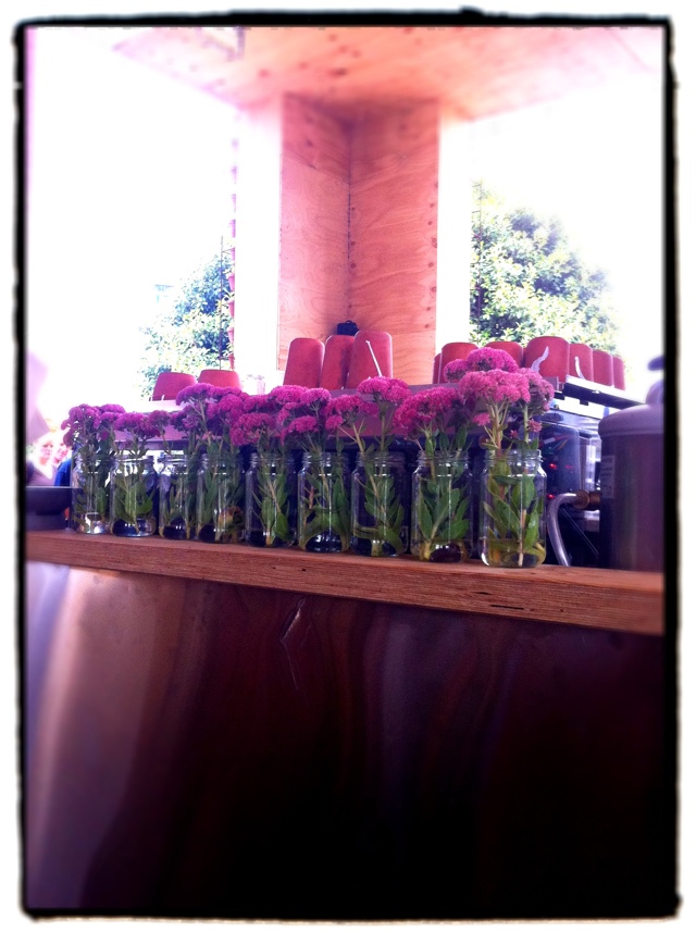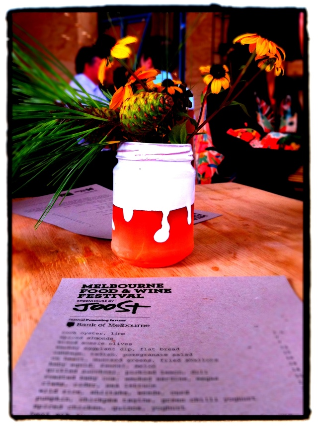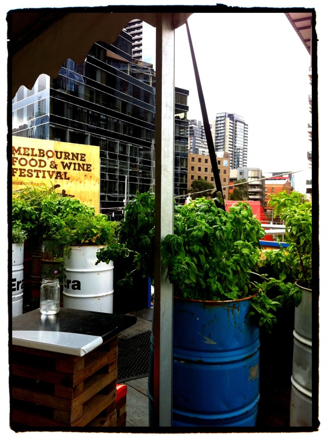 The Greenhouse by Joost has been delivered into my lap so to speak – assembled literally outside my building, so that I pass it 3 or 4 times a day. I’ve been delighted to be able to sneak a quick piccolo in each morning before work, and just soak up the green-ness of it all, enjoying the warm welcome of a cheerful team who appear as happy to be there as I am, as well of course as admiring the work of infamous Iron Chef/Perth Greenhouse/Danish master shoulder-rubbing Matt Stone and his killer ink. For a more detailed post on the actual Greenhouse concept see my previous entry here.