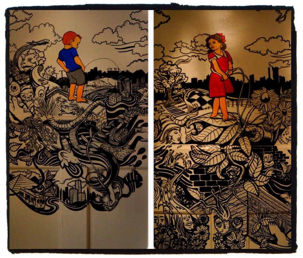Then there’s the gorgeous fit out: exposed brick, bright blue glassware, lovely crockery, quirky light fittings, hand painted bathroom doors, ornate framing, and fresh flowers.