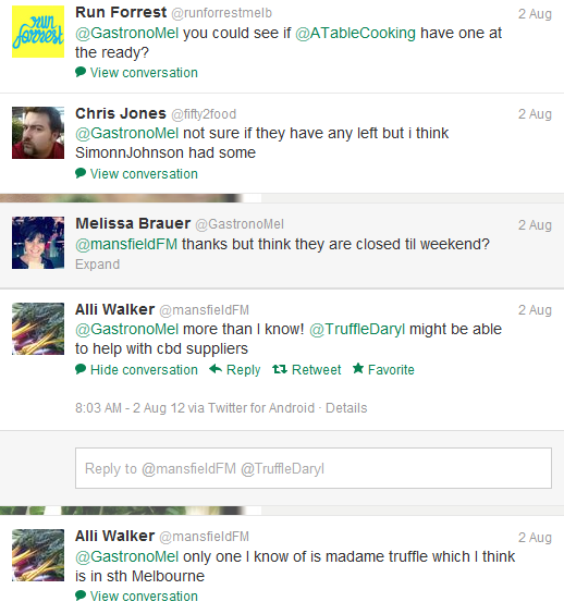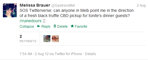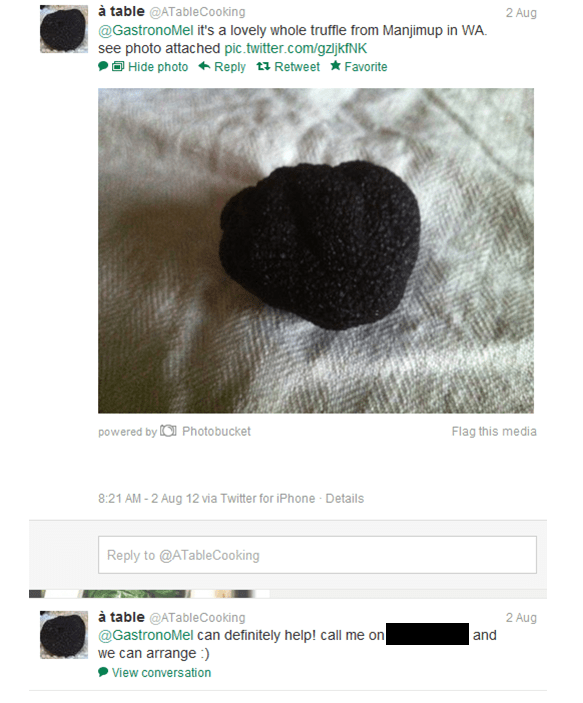 This is the story of how Twitter saved my marriage. Rewind to 2 weekends ago when we were visiting my sister in Canberra. The Truffle Festival just happened to be on at the same time, and we decided that before we left we simply had to bring a truffle home to Melbourne. We ended up at the Fyshwick market, which is home to the lovely 3 Seeds – a cooking school, store and canteen.