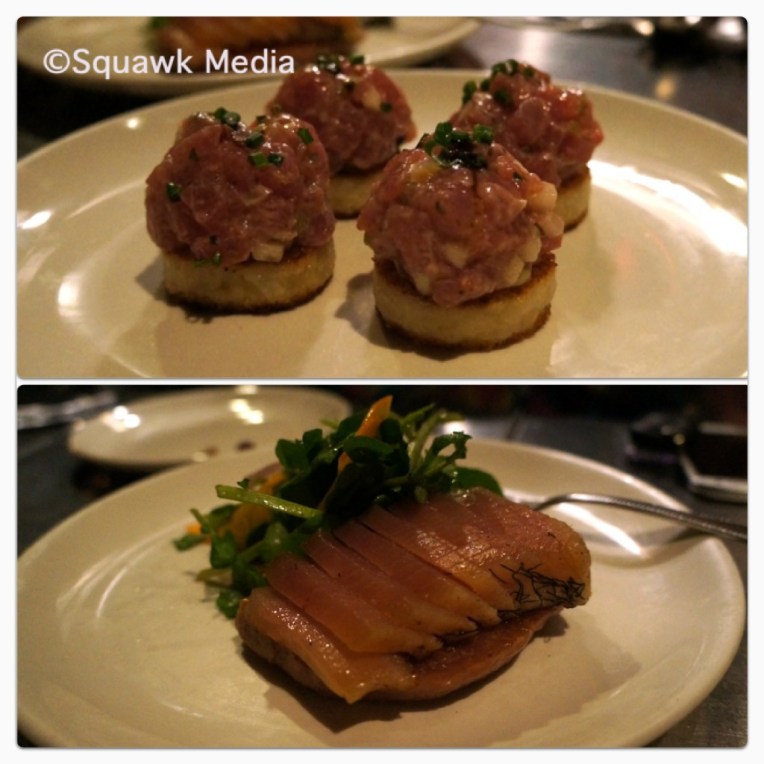 I quickly decided the way to get the most out of this visit was to ask Ed to feed us his favourite dishes until we fell into a food coma, and he was only too happy to oblige. He started us off with the ahi (Hawaiian tuna) tartare served on a risotto cake, with balsamic vinegar, which was superb, both in texture and flavour, and came at us soon after with the cured opah (Moonfish) with pa’ i’ ai (made from taro root), watercress and persimmon which all worked beautifully together. Our extremely sweet and friendly waitress Randi patiently explained each ingredient to us and answered my incessant questions throughout the meal.