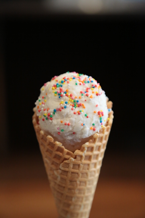 Icecream? No. It’s Crisco (Frymaster here) whipped up with icing sugar and then roughed up with a wooden skewer to look like a scoop. No melting under the camera, no drips, no mess and you can make it in as many colours as you like with food dye. Handy for that movie scene which has to be re-shot 15 times.