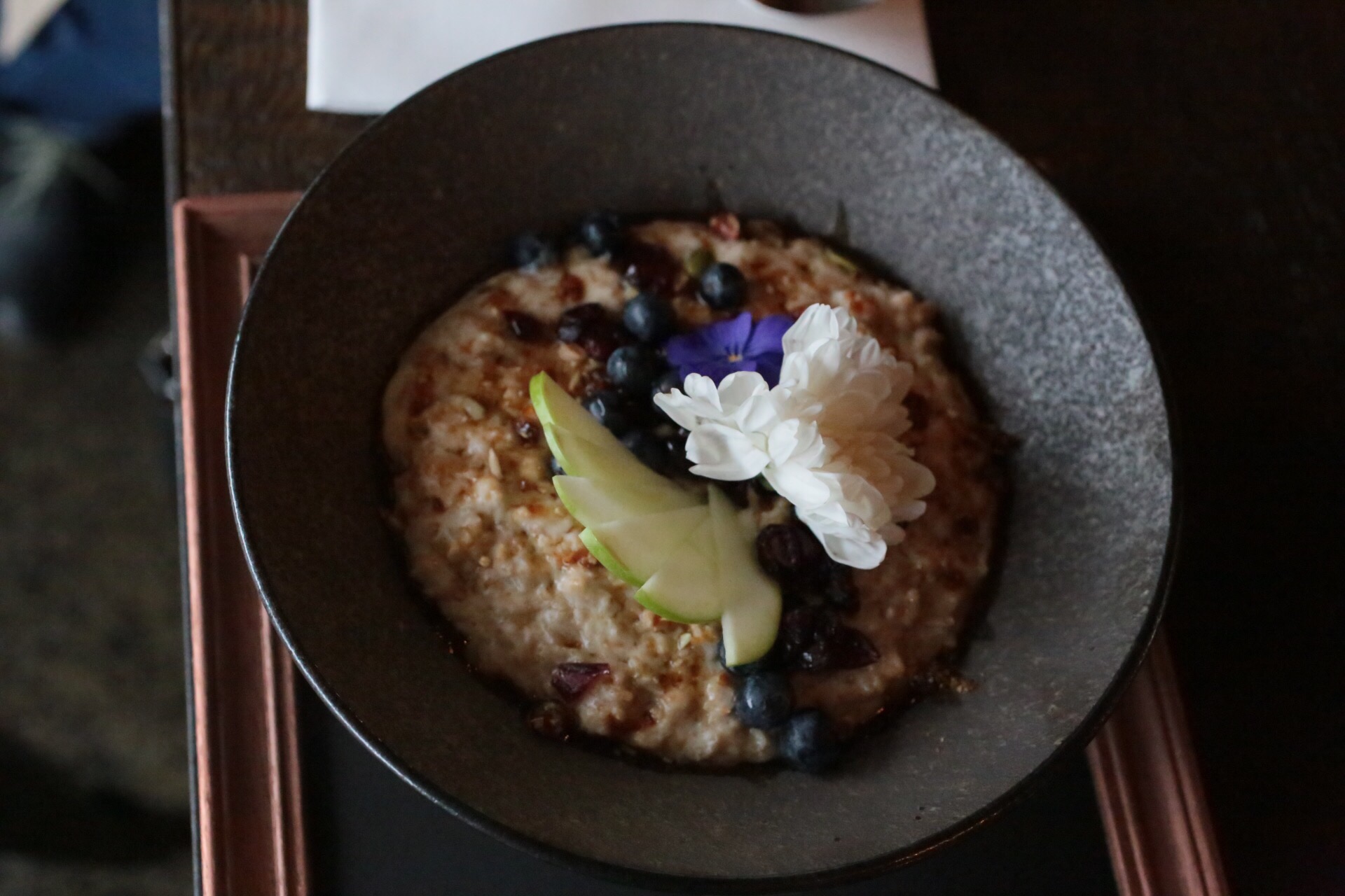 Similarly, bring your appetite for the vanilla and chai porridge with caramelised nut crumble, cranberries, blueberries, honey and apple, served with flowers, which arrives on a blackboard picture frame with fresh cream in a science beaker. Not only is it a generous serve, but your need to Instagram will be working overtime with the cuteness of it all.
